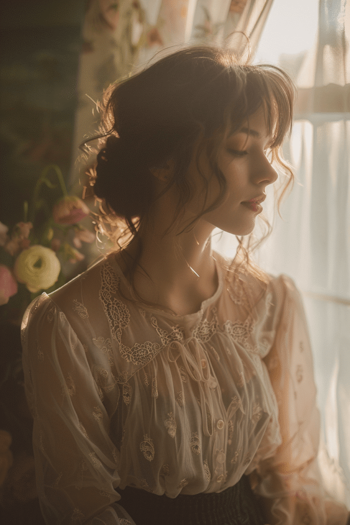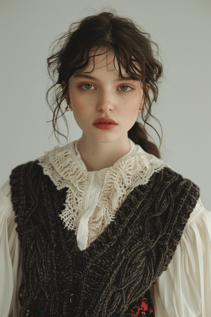 Modern Poetcore moves away from costumes and fantasy, focusing on gentle layering, natural textures, softened structure, muted emotional palettes, and effortless femininity.
