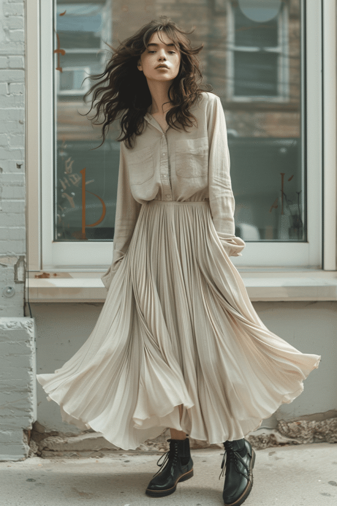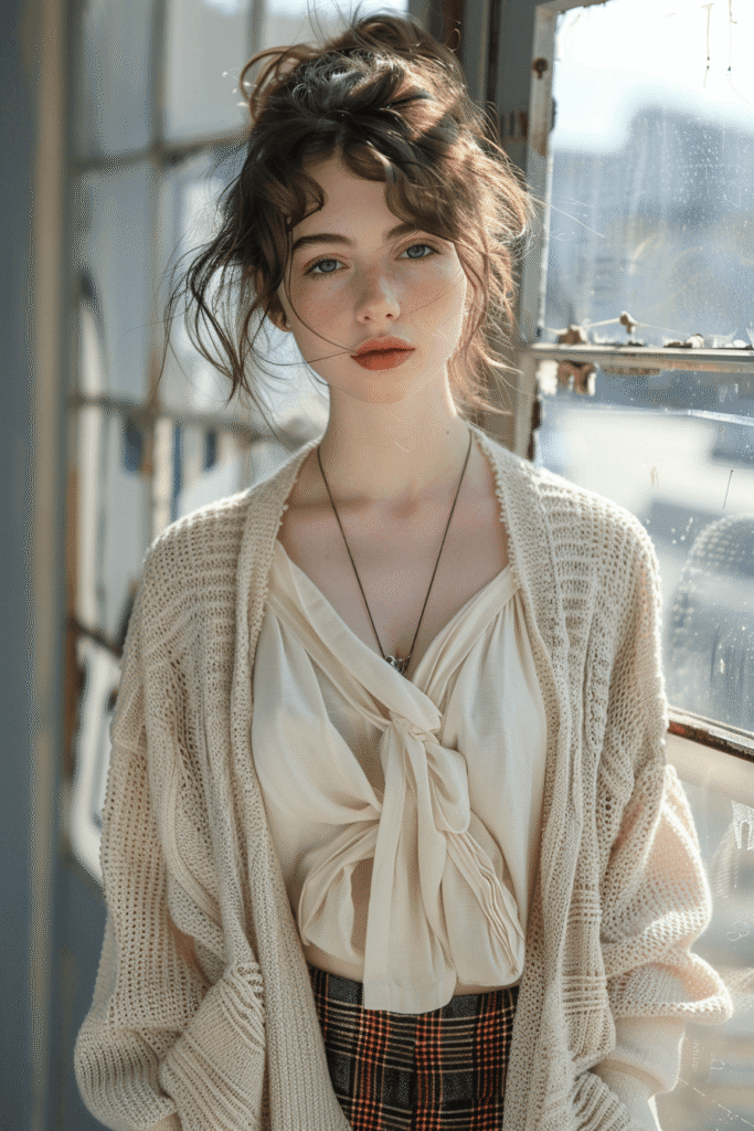 Modern poetcore outfit with soft romantic layers